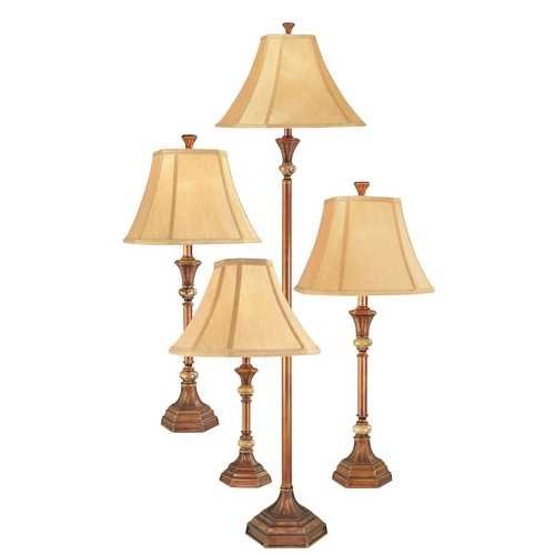 Lamp set with marble accents and golden shades. Add instant elegance to your family room with this matching lamp set. It includes two table lamps, one floor lamp and one accent lamp. Each lamp features an attractive bronze finish with marble accents. The golden shades boast a nice traditional shape. The floor lamp measures 60 inches tall and uses a three-way 150-watt bulb. The table lamps measure 28-1/2 inches tall and use a 60-watt bulb. The accent lamp is 16 inches tall and uses a 40-watt bulb. Bulbs not included. Offering unique collections from a consortium of designers, Design Classics features more than 1,300 elegantly styled yet affordable priced items; many of which are exclusive, signature designs. As a direct importer, the company provides the most competitive pricing without compromising quality or innovation. Hallmarks of Design Classic products include Energy Star-rated fixtures and the patented Clever Lever SwitchTM. Design Classics is an exclusive line of Destination Lighting. DL # 243546.